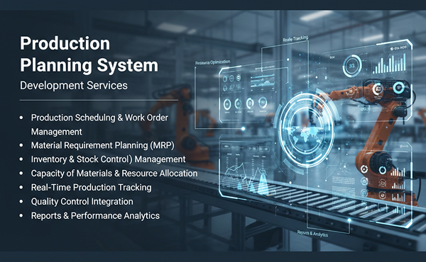 Production Planning System development services to help businesses efficiently manage manufacturing operations, optimize resources, and improve productivity. Our solution ensures smooth coordination between production, inventory, procurement, and delivery schedules.